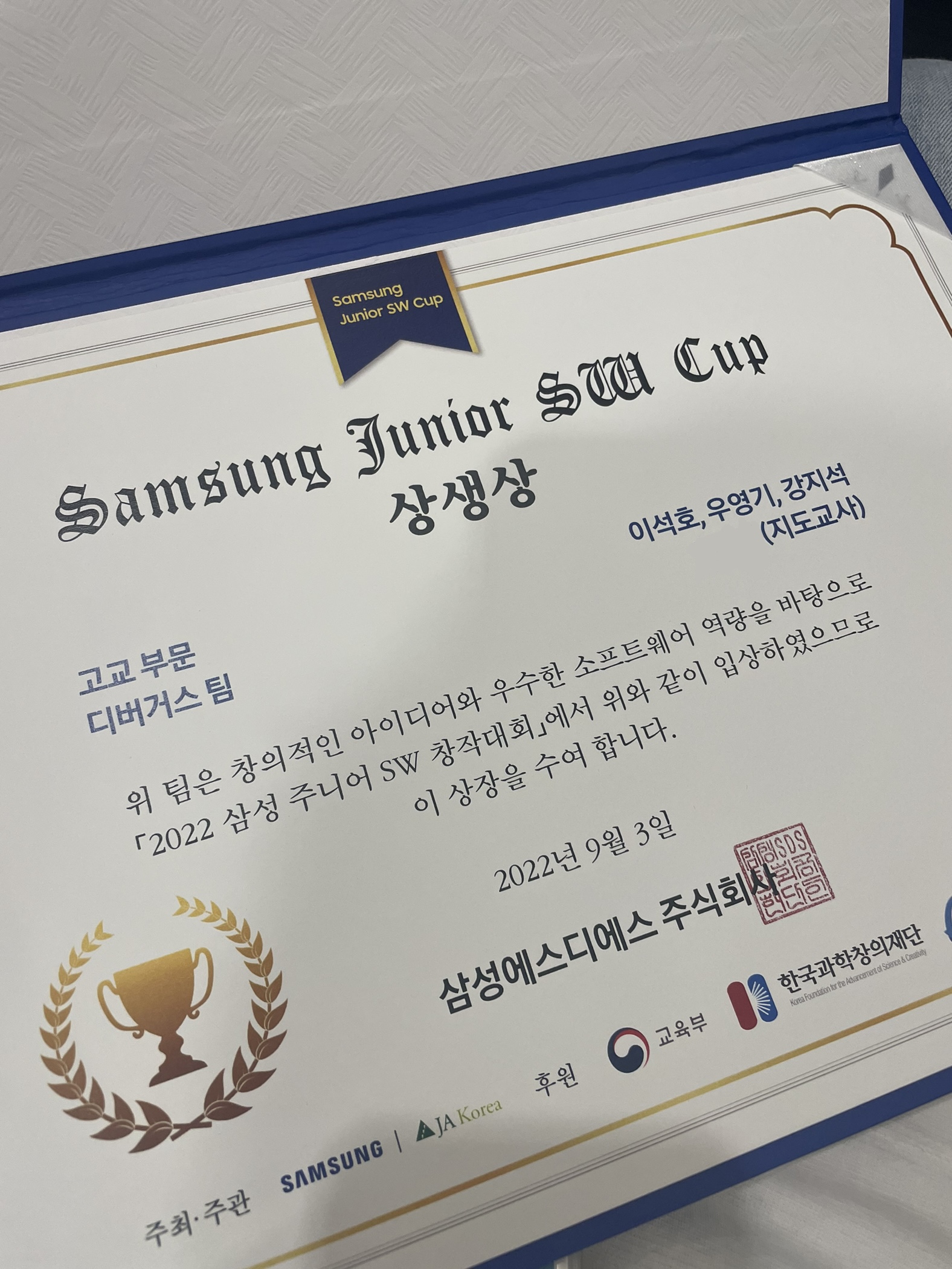 이 말대로 삼성 주니어 SW 창작대회는 내 인생의 큰 전환점이 되었다.