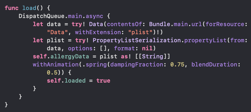 plist를 사용하니 로딩 시간이 성능에 따라 1~3초로 단축되었다. 이 정도면 기다릴 만한 시간이다.