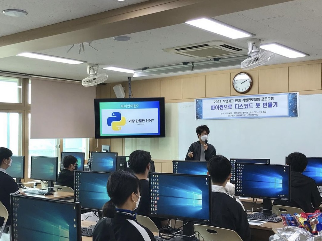 나는 '파이썬으로 디스코드 봇 만들기' 수업을 진행했다. 입학한지 1달만이었다.